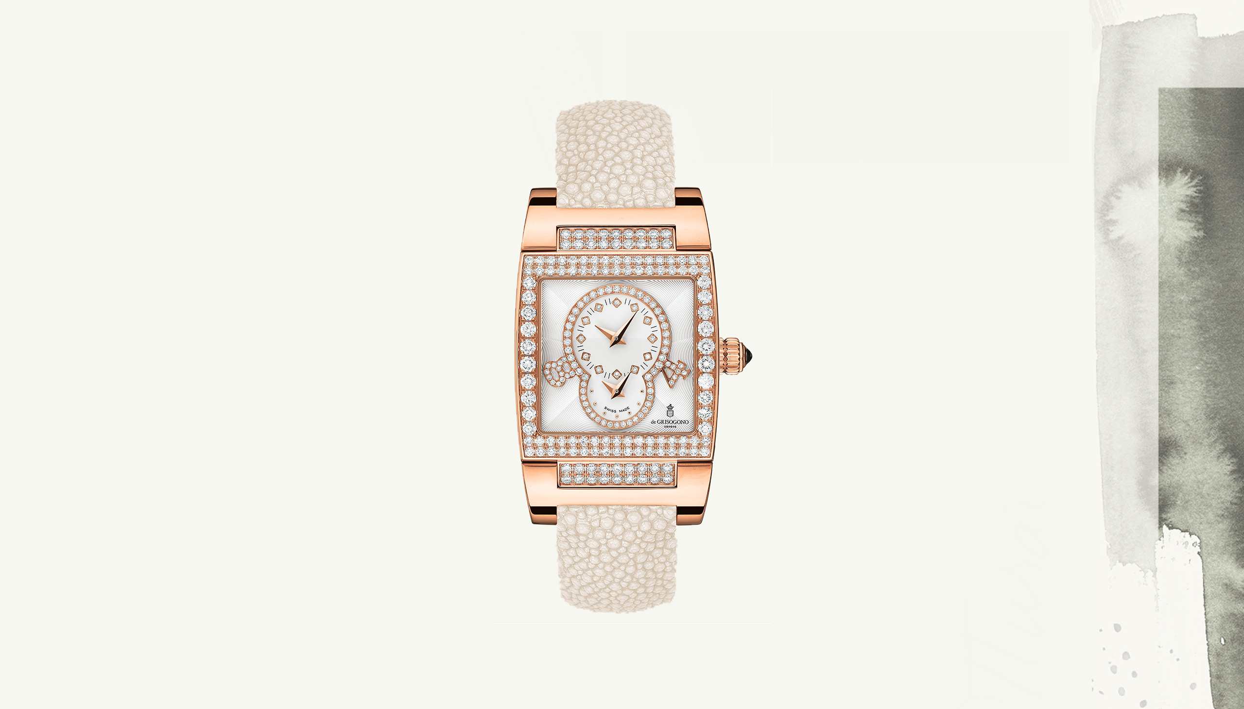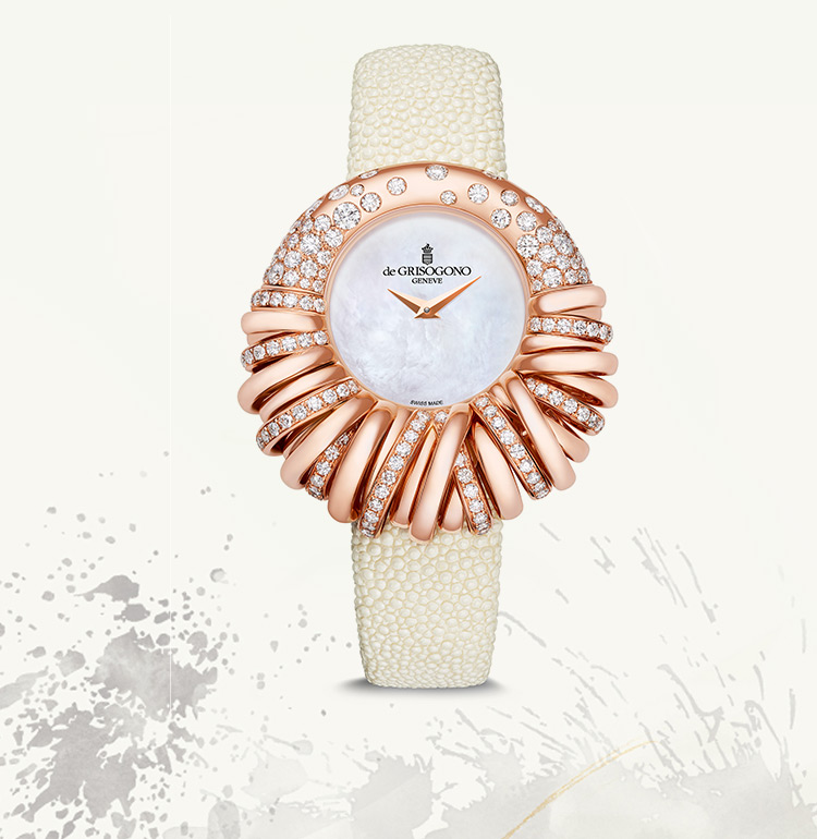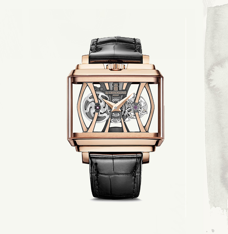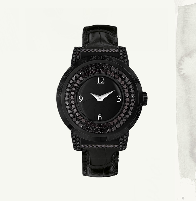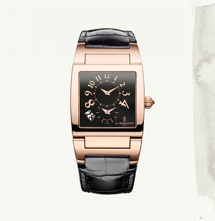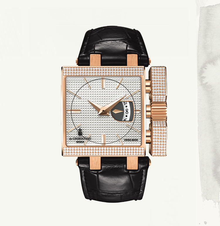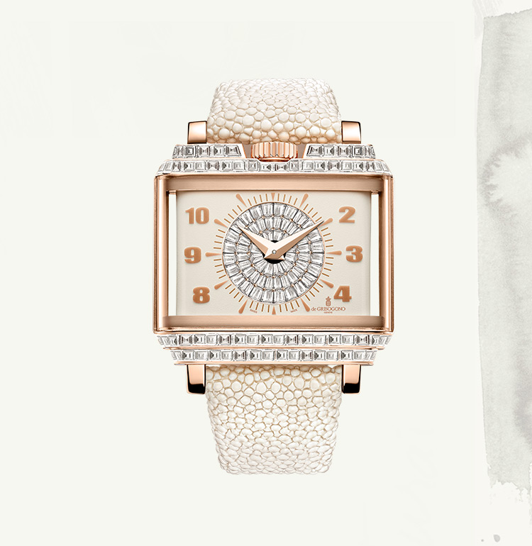 In 2000, when entering the watchmaking scene, he endowed his first collection INSTRUMENTO with a tonneau-shaped case revisited according to his singular approach. Fifteen years later, he developed the NEW RETRO, a simple design imbued with the chic spirit of the 1950s. Transposing the timeless aesthetic refinement of the past into contemporary language, de GRISOGONO infuses time with a taste for naturally beautiful things that never scrimp on style.