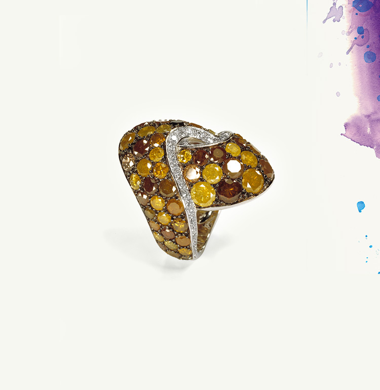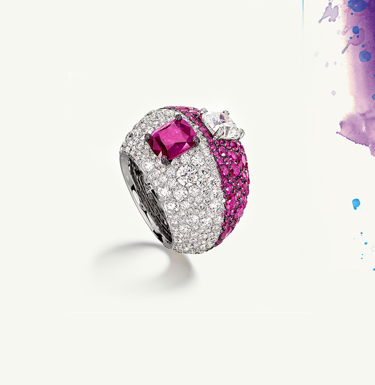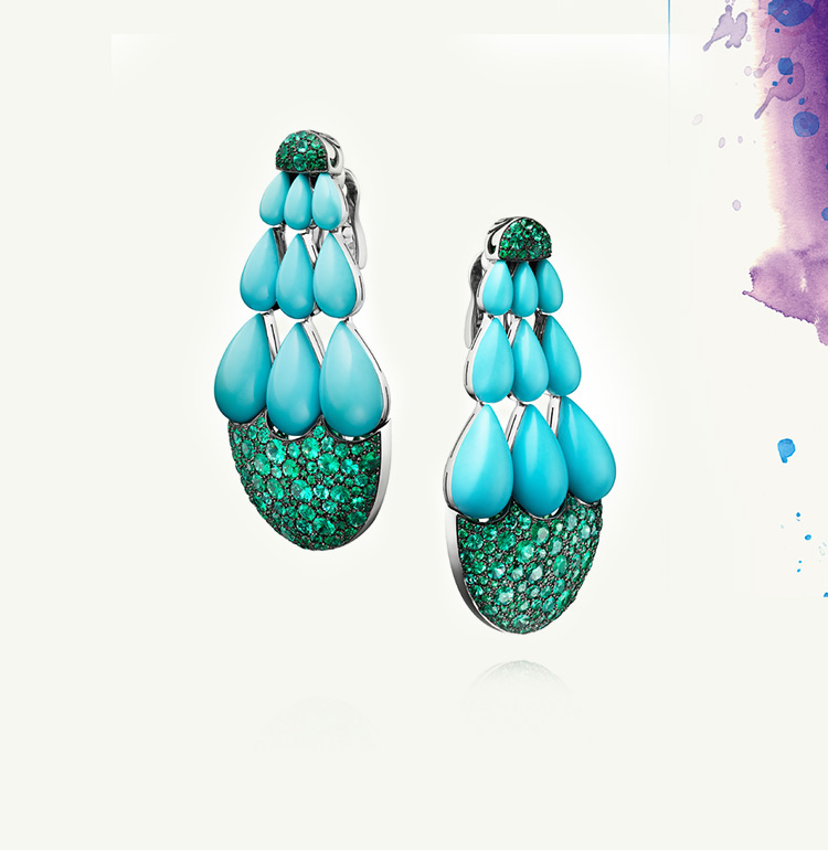 It isn’t only the combination of gemstones that delights and surprises, but also the mix of colours. Fawaz Gruosi loves to work with matching tones, pushing the boundaries of traditional pavé setting to its ultimate expression. Breaking all the traditional colour codes by offering daring and unusual combinations of vibrant shades and original stones, he has made the de GRISOGONO colour palette one of its unmistakable signatures.