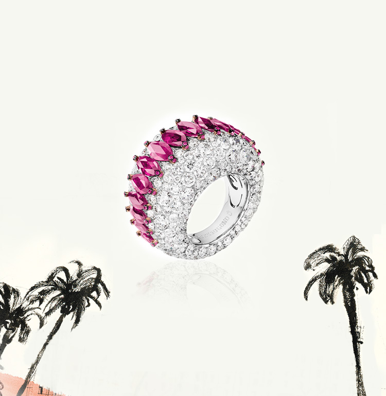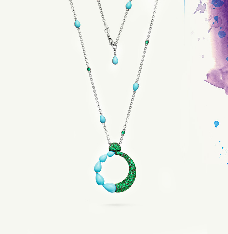 de GRISOGONO loves colour, contrast and subtle nuances. Its favourite chromatic variations hark back to the roots of its creator. The Mediterranean serves as a perfect backdrop providing Fawaz Gruosi with an endless source of inspiration and expression. He transposes these rich and natural shades through the vivid hues of the carefully chosen stones.