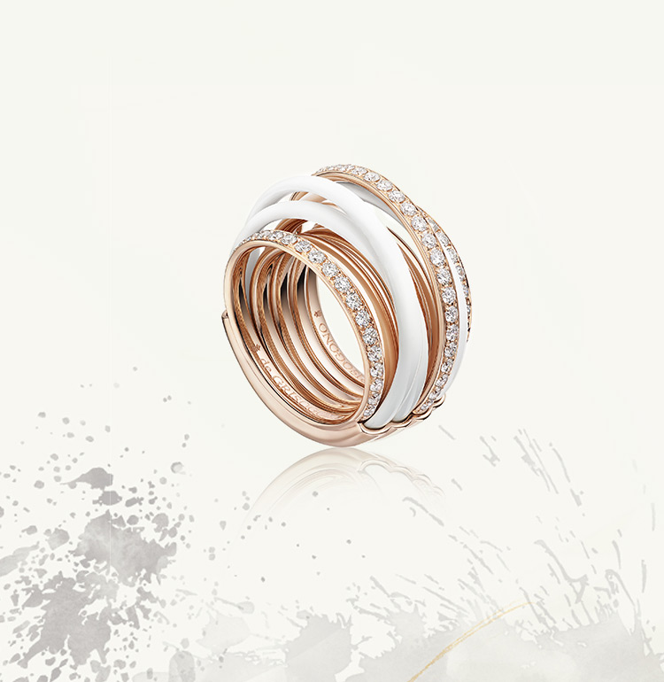 It epitomises an intense sense of living, an exuberant spiral composed of daintily interwoven rings. Alternating polished, ceramic or gemset bands entwine without ever merging. A self-evident, natural, flowing aesthetic that is apparently simple, belies the fact its structure involves complex expertise and demanding technical mastery. Its finger firmly on the pulse, it is perpetually reinvented while remaining loyal to its overarching interlacing theme: its identity, its distinctive signature, its style.