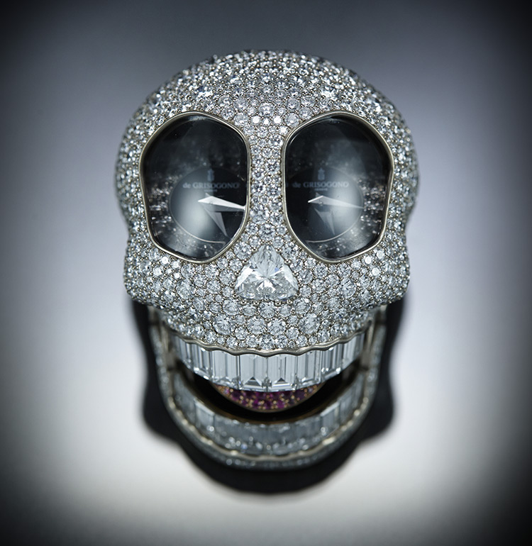 Be it a mischievous objet d’art such as the Crazy Skull, or a symbol of absolute seduction and a cult object like the Lipstick-shaped case; whether revealing the airy magic of briolette-cut stones adorning the Grappoli watch, or interpreting the complexity of the infinity symbol in a play on words evoking his daughter Violetta, Fawaz Gruosi instils time with an even more precious touch.