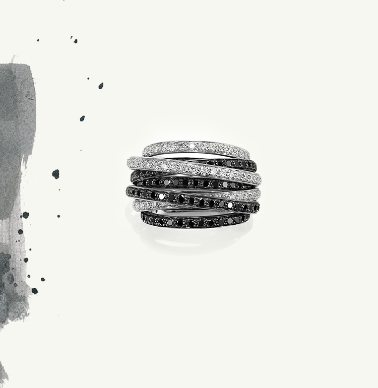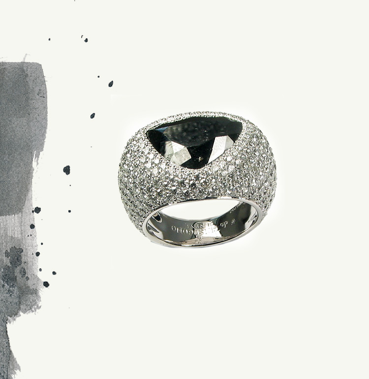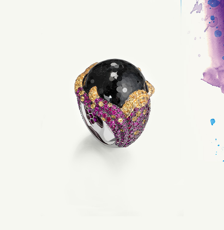 Admirably offset by contrasting emeralds, rubies, sapphires, pearls and white or icy diamonds, the de GRISOGONO black diamond intensifies the sparkle of the brightest coloured stones, and accentuates the silhouettes of the most iconic collections.