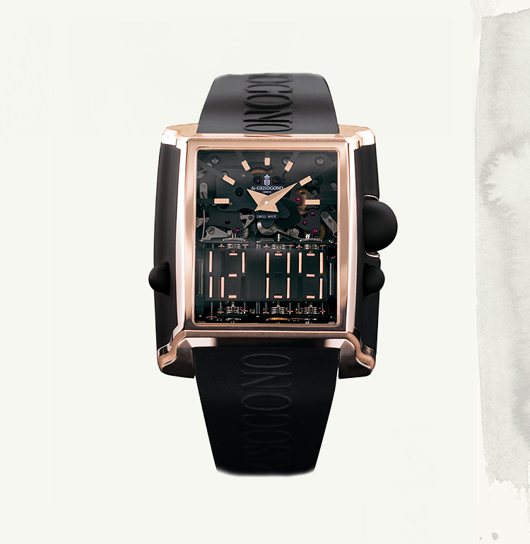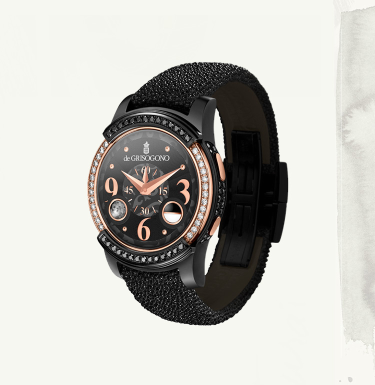 The horological vision of de GRISOGONO embodies an original way of displaying time. Above and beyond formal aesthetics, Fawaz Gruosi has always encouraged innovation, determined to give a new lease of life to the watchmaking tradition. Complications presented in deliberately unconventional ways, designed to channel his vision of time.